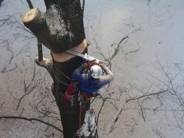 seilunterstützten Arbeitstechnik zum Tragen, so dass auch Bäume an unzugänglichen und verbauten Standorten ohne unnötiges Risiko gefällt werden können.